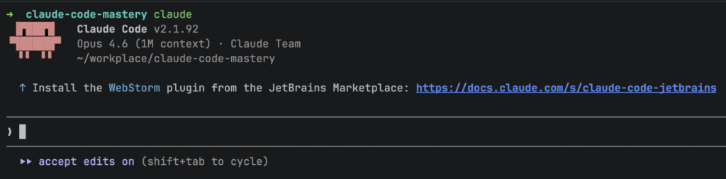 Shift + Tab을 누를 때마다 모드가 순환된다. 순환 순서는 default → acceptEdits → plan 이다
