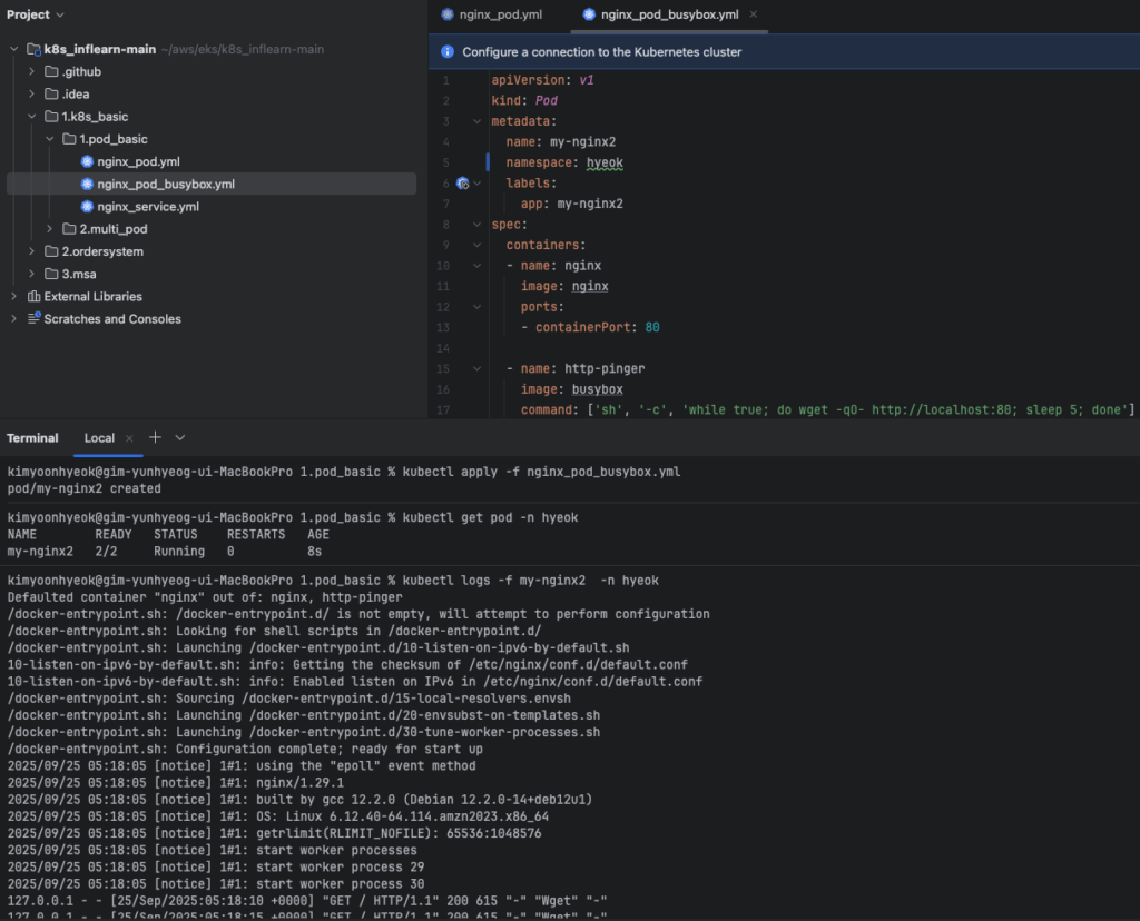 다중 컨테이너 Pod YAML 파일 (예: nginx_pod_busybox.yml)