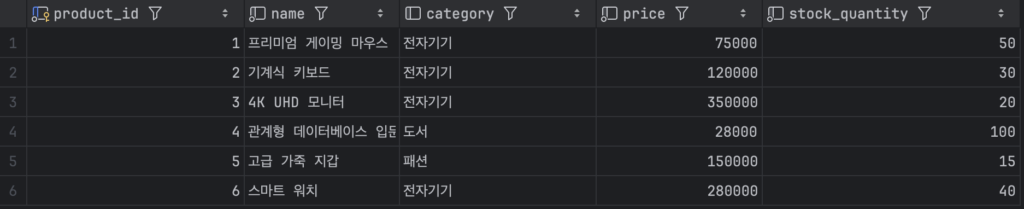 • orders 테이블의 product_id (외래 키)는 products 테이블의 product_id (기본 키)와 연결된다